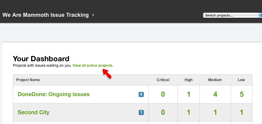 In the old DoneDone, there was a single listing which showed all projects regardless of whether there were issues or specific updates you need to know about.