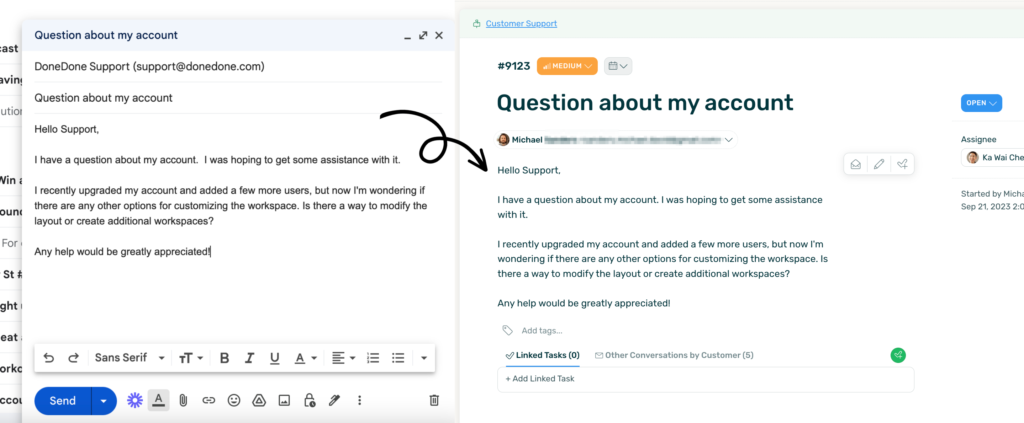 Auto-forward emails from your company inbox into DoneDone.
