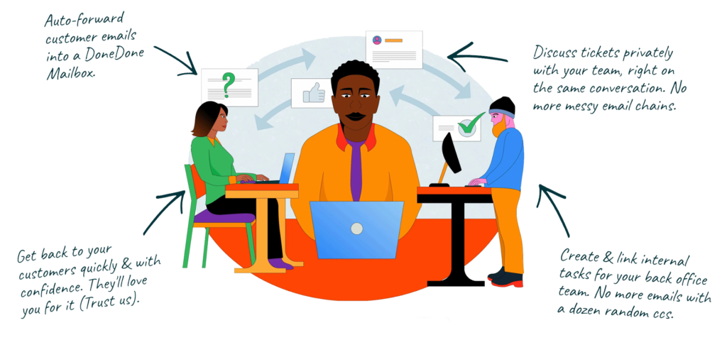 DoneDone Mailboxes turn your cluttered support emails into streamlined, organized conversations.